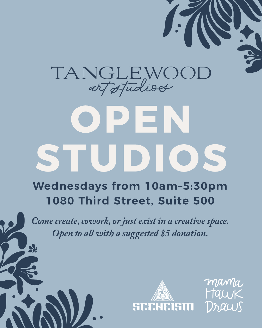 The gallery is open ever Wednesday from 10am–5:30pm. If you’d like a private viewing of the gallery, please email us at hello@tanglewoodartstudios.com.